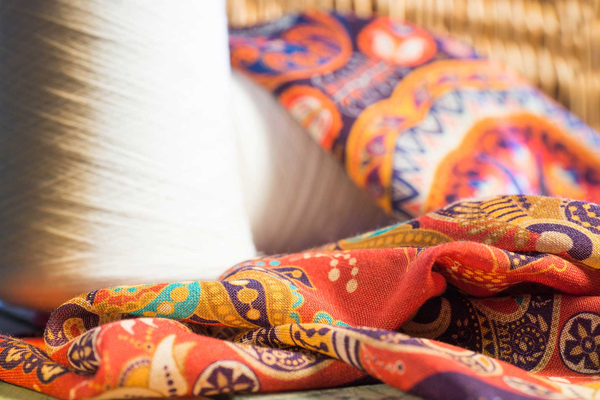 Estamos especializados en la estampación digital textil sobre seda y lana 100% natural.